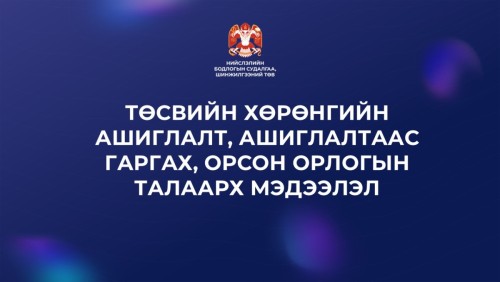 ТӨСВИЙН ХӨРӨНГИЙН АШИГЛАЛТ, АШИГЛАЛТААС ГАРГАХ, ОРСОН ОРЛОГЫН ТАЛААРХ МЭДЭЭЛЭЛ