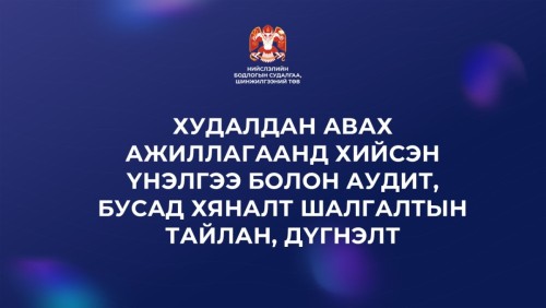 ХУДАЛДАН АВАХ АЖИЛЛАГААНД ХИЙСЭН ҮНЭЛГЭЭ БОЛОН АУДИТ, БУСАД ХЯНАЛТ ШАЛГАЛТЫН ТАЙЛАН, ДҮГНЭЛТ