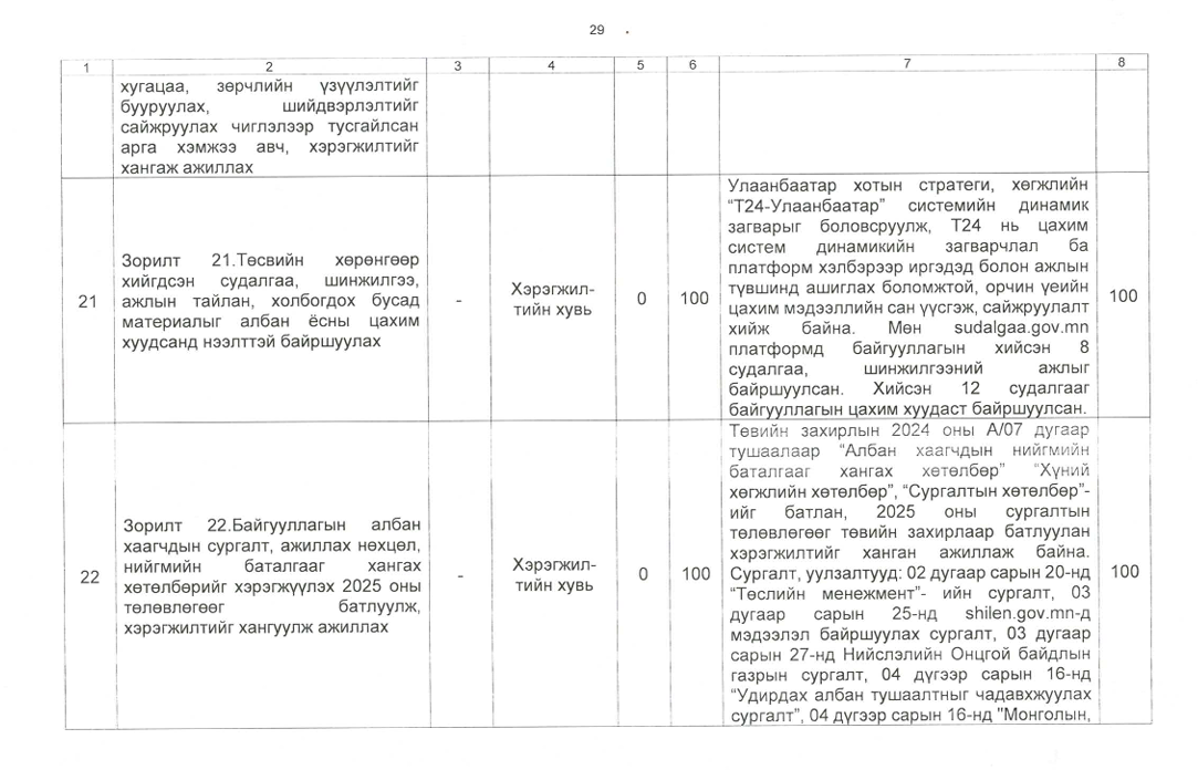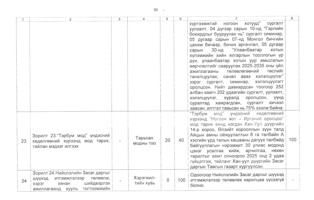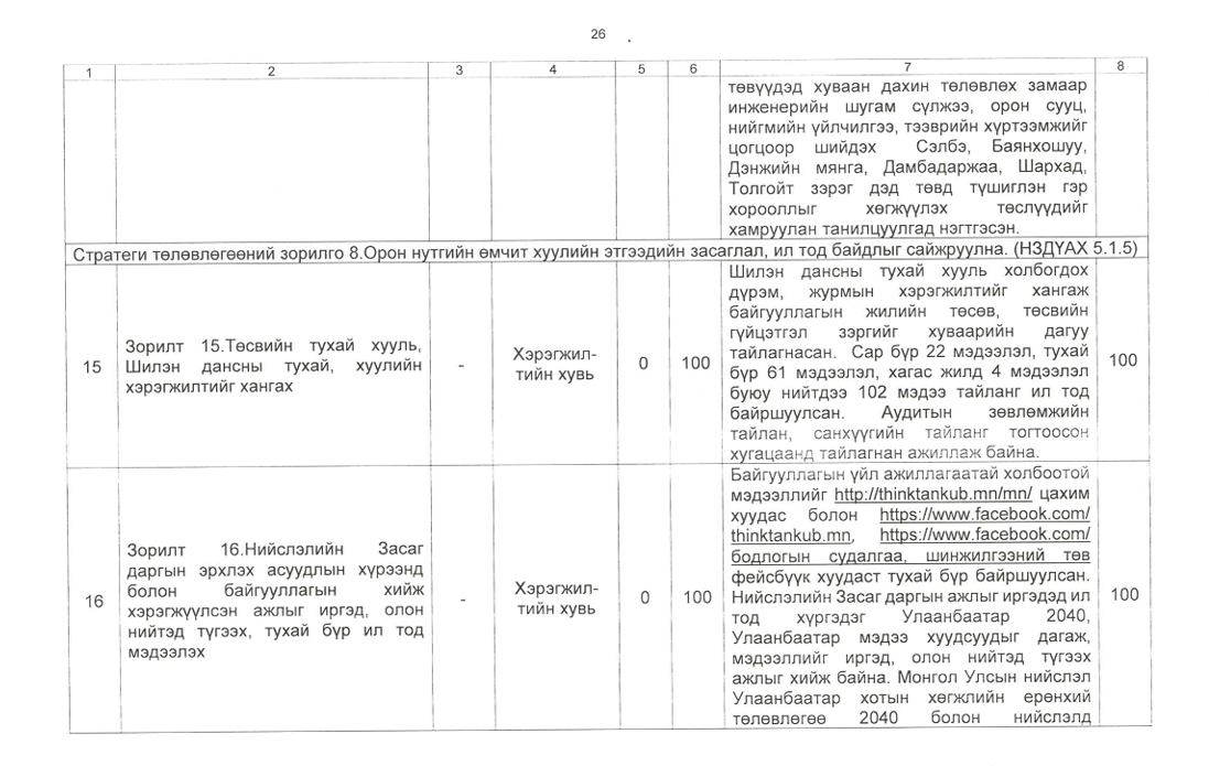 Хөгжлийн бодлого, төлөвлөлтийн баримт бичгийн хэрэгжилтийн тайлан