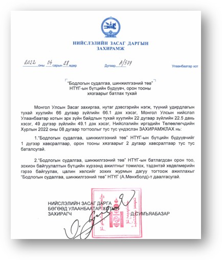 МОНГОЛ УЛСЫН НИЙСЛЭЛ УЛААНБААТАР ХОТЫН ЭРХ ЗҮЙН БАЙДЛЫН ТУХАЙ ХУУЛЬ /Шинэчилсэн найруулга/