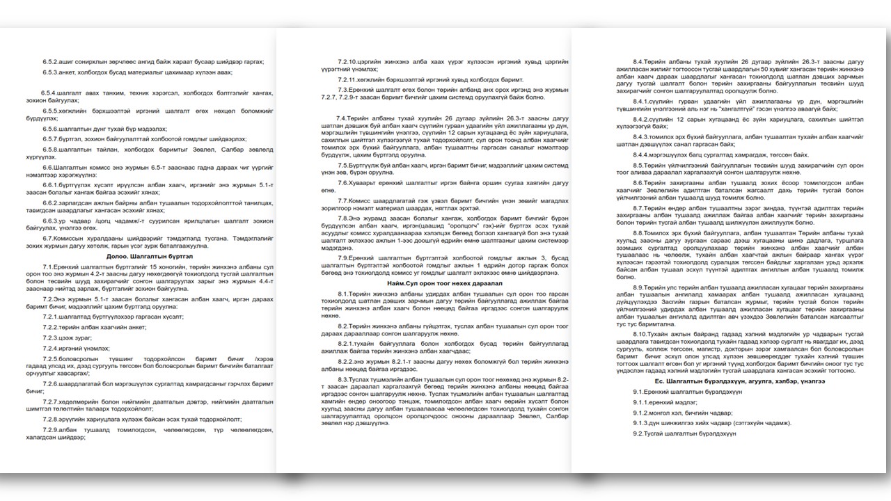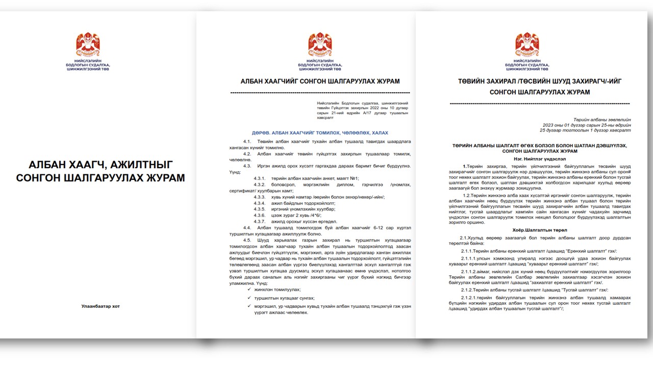 АЛБАН ХААГЧ, АЖИЛТНЫГ СОНГОН ШАЛГАРУУЛАХ ЖУРАМ