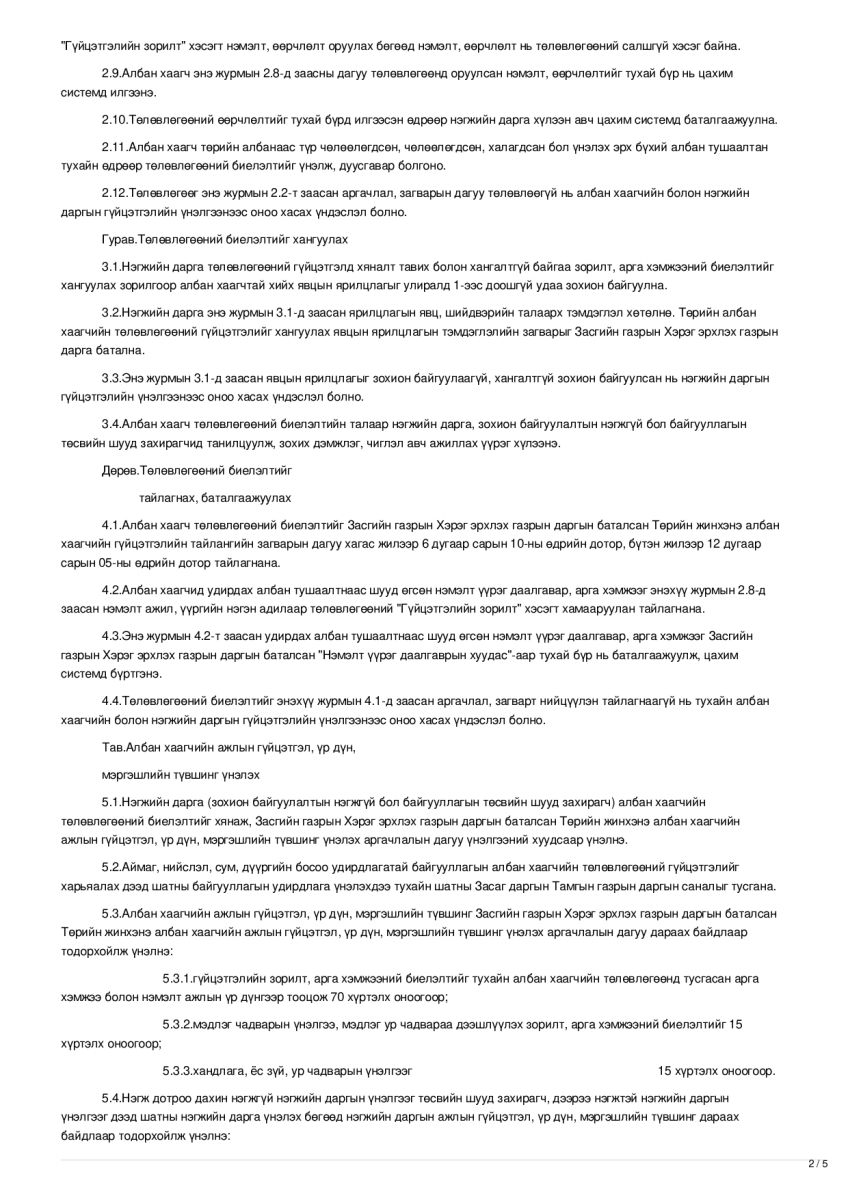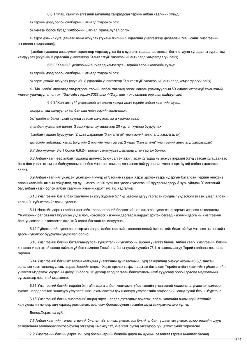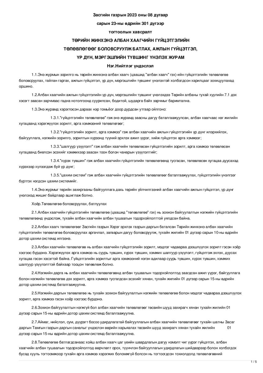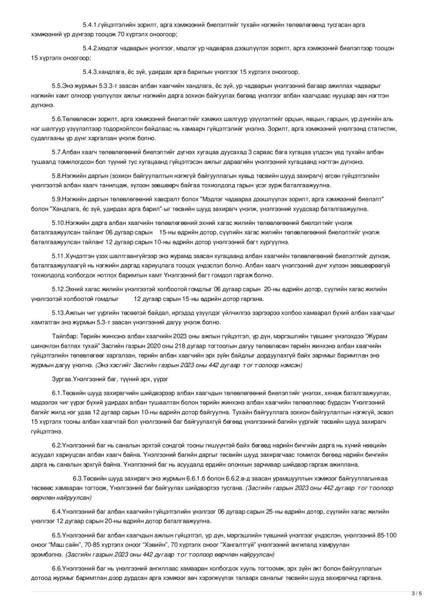 Байгууллагын хүний нөөцийн бодлого, төлөвлөгөө, түүний хэрэгжилтийг хянаж үнэлэхдээ Засгийн газрын тогтоолоор батлагдсан журмыг мөрдөж ажилладаг.