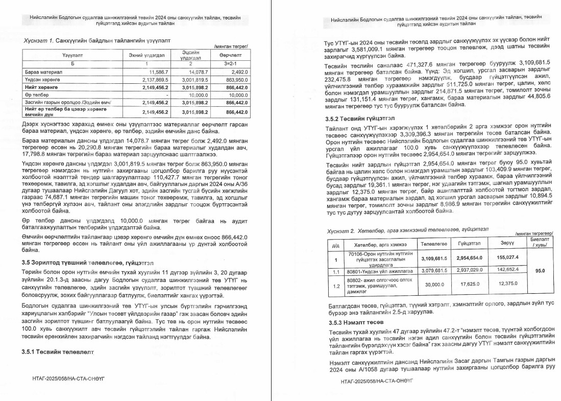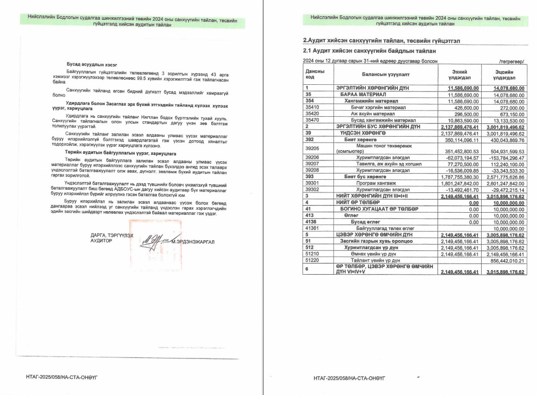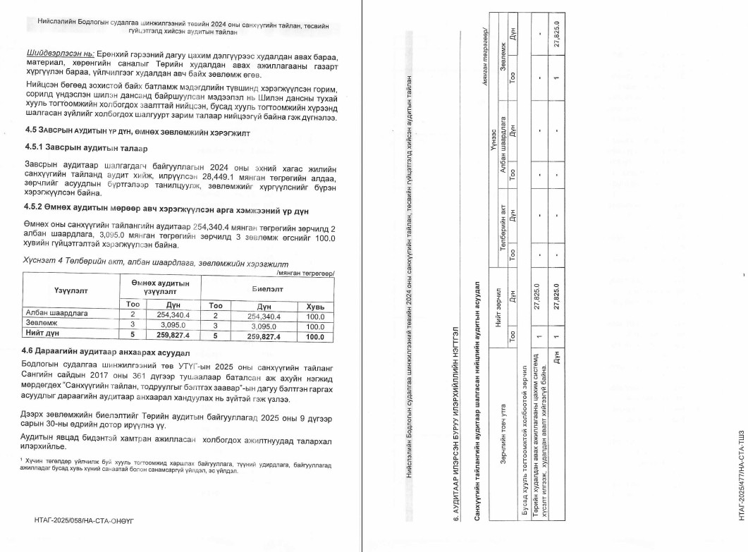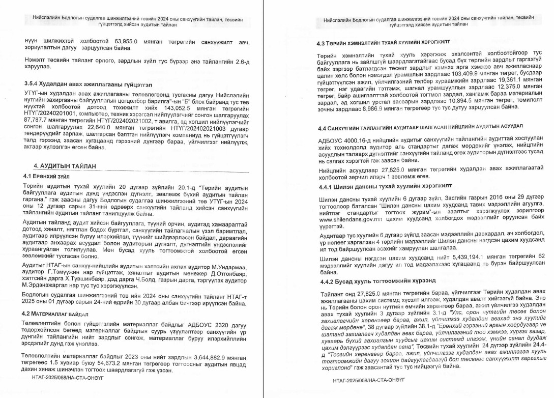 САНХҮҮГИЙН ТАЙЛАНД ХИЙСЭН АУДИТЫН ДҮГНЭЛТ