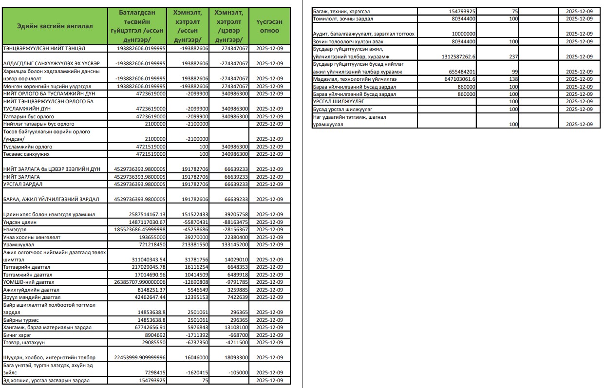 ТӨСВИЙН ХЭМНЭЛТ, ХЭТРЭЛТ, ТҮҮНИЙ ШАЛТГААНЫ ТАЙЛБАР