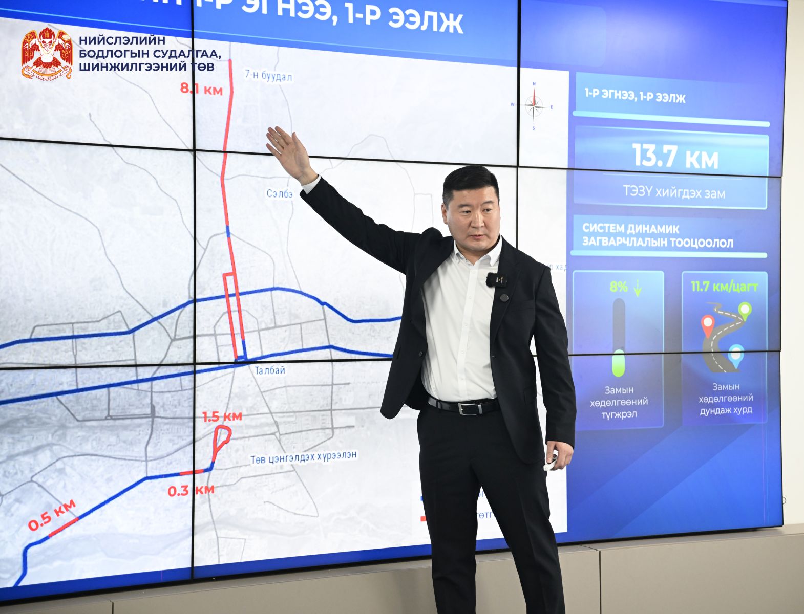 Нийслэлийн Засаг даргын Эдийн засгийн хөгжил, дэд бүтцийн асуудал хариуцсан нэгдүгээр орлогч Т.Даваадалай агаарын бохирдол, авто замын түгжрэлийг бууруулах, дэд бүтцийн хүртээмжийг нэмэгдүүлэх чиглэлээр нийслэлд хэрэгжүүлж буй мега төслүүдийн талаар танилцуулж, Улаанбаатар хотод хэрэгжиж буй 16 мега төслийн явцыг мэдээллээ.