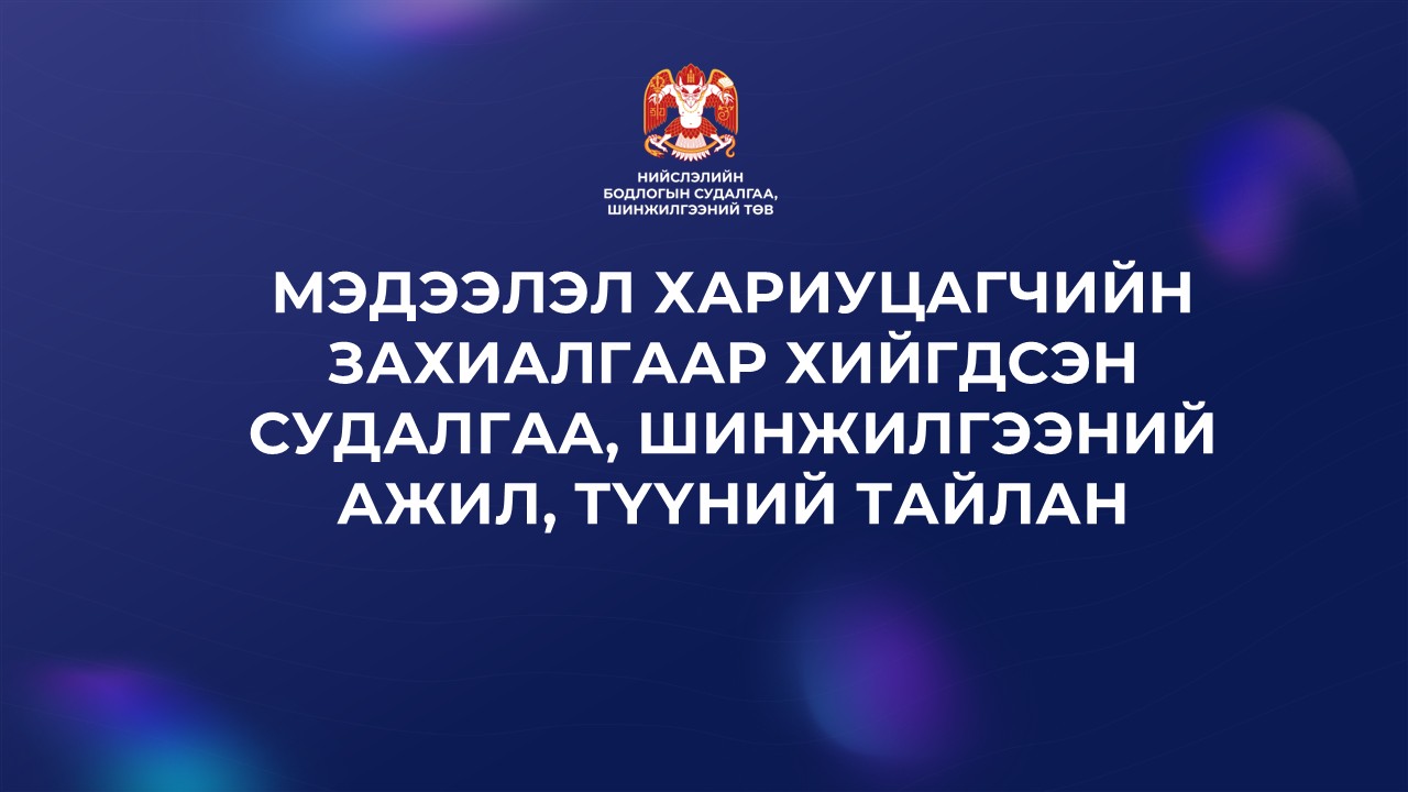 МЭДЭЭЛЭЛ ХАРИУЦАГЧИЙН ЗАХИАЛГААР ХИЙГДСЭН СУДАЛГАА, ШИНЖИЛГЭЭНИЙ АЖИЛ, ТҮҮНИЙ ТАЙЛАН